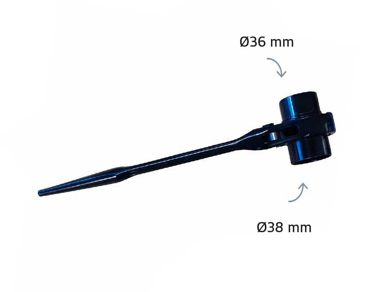 • Compatible avec deux diamètres d’écrous Ø36 et Ø38 mm